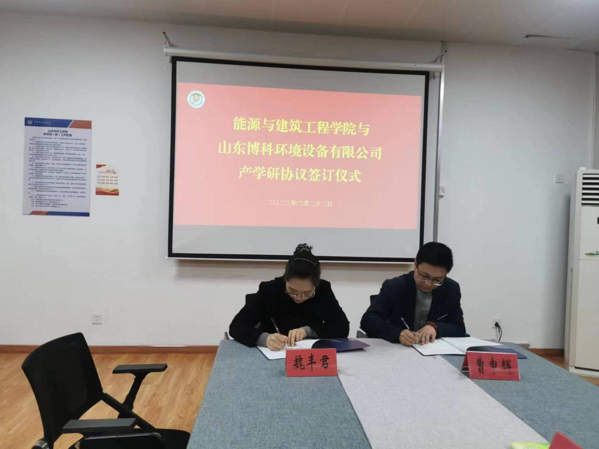 双方经过交流洽谈,确定了15名学生于3月份赴山东博科环境设备有限公司进行毕业实习,双方就毕业实习中“安全第一”的理念达成了高度一致。最后,魏院长与曹申辉总经理在与会人员的见证下签署了产学研合作协议。通过本次洽谈,为新学期的产学研校企合作工作的深入开展打开了良好的开端。