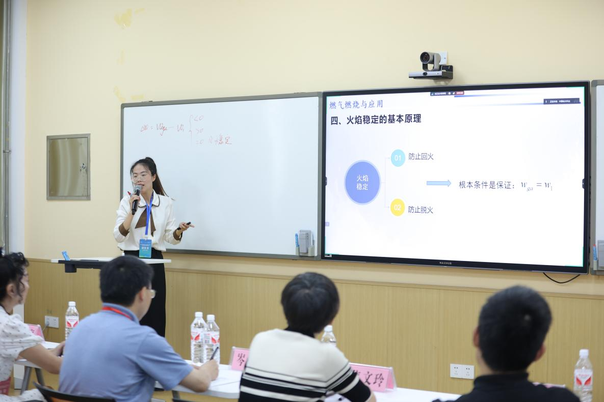 我院选派胡秋冬老师参赛,胡老师稳扎稳打,求务实,争创新,最终突破重围,进入决赛。在决赛期间,胡老师精心赛前准备、细心磨课演练、用心课堂设计、走心分析讲解,在决赛课堂上,胡老师围绕火焰的稳定燃烧,生动形象的讲解了燃气燃烧与应用,获得了在场评委专家的一致认可。