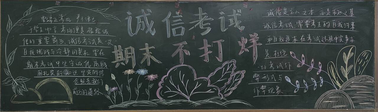 此次活动,以黑板报为载体,将诚信教育融入校园日常,不仅扮靓教室环境,更筑牢考风考纪防线。随着期末备考深入,这些饱含创意的黑板报,正持续传递“以诚为基、以实求胜”的信念,助力同学们以诚信姿态冲刺期末;“期末不打烊”的标语,见证的不仅是奋进的脚步,更是坚守初心的诚信担当。