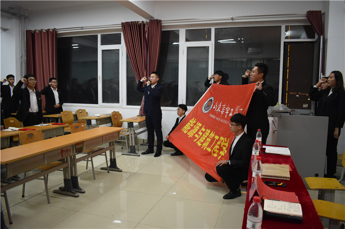 随后,两届学生会主席进行院旗交接,新任主席徐传良带领全体学生会成员宣誓。