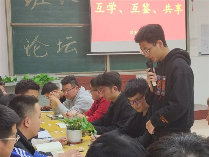 会议伊始,满志川老师致开幕词,随后全体人员共同观看了特色班级VCR。本次论坛邀请了16级本科建环1班(曾获省级优秀班集体候选班级、德州市五四红旗团支部)学生代表徐哲,17级本科能动1班学生王欣(国家奖学金、国家励志奖学金获得者,校十大优秀学生),他们分别就班级管理、个人成长等一系列问题进行讲述。随后,各班班长分别对班级当前发展的现状、存在的问题进行详细而深入的交流和研讨。会后,刘超老师作出总结。他对班级管理、学风建设以及班长、团支书等学生干部的个人成长提出了两点建议。一是学生干部应具备的作风和能力,二是班长、团支书管理班级要以身作则,明确干部职责和工作定位,不断在总结经验中成长。