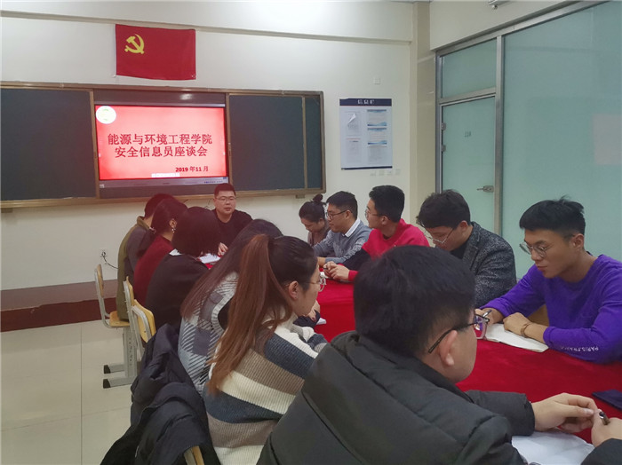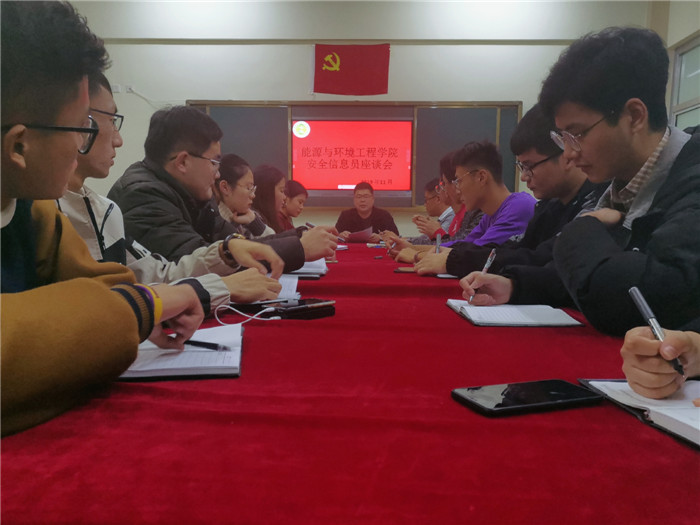 为提高我院安全信息员的工作积极性和敏感性,明确工作责任,进一步增强学生的安全意识和自我防护能力。2019年11月18日,能源与环境工程学院在21#611教室召开安全信息员座谈会,院长助理马安会和学院辅导员老师出席了此次会议。