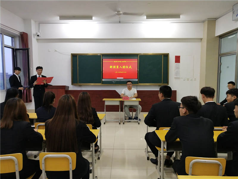 首先,学院学生会组织部部长宣读《中国共产主义青年团章程》及十位新入团团员名单。随后,老团员上台为新团员颁发团员证以及佩戴团徽,并进行了宣誓仪式。老团员代表发言,号召全体新团员发扬共青团优良传统,努力学习,争取早日成才,共同创造新的辉煌,鼓励所有团员用勤劳的双手共同努力,保持共青团员的优秀品质,用实际行动为团组织增光添彩。最后,姜立波老师代表学院团总支对新加入的共青团员表示热烈欢迎,并向新老团员提出希望:提高思想觉悟;凝聚青年力量,发挥先锋作用;加强专业学习,培养创新精神。