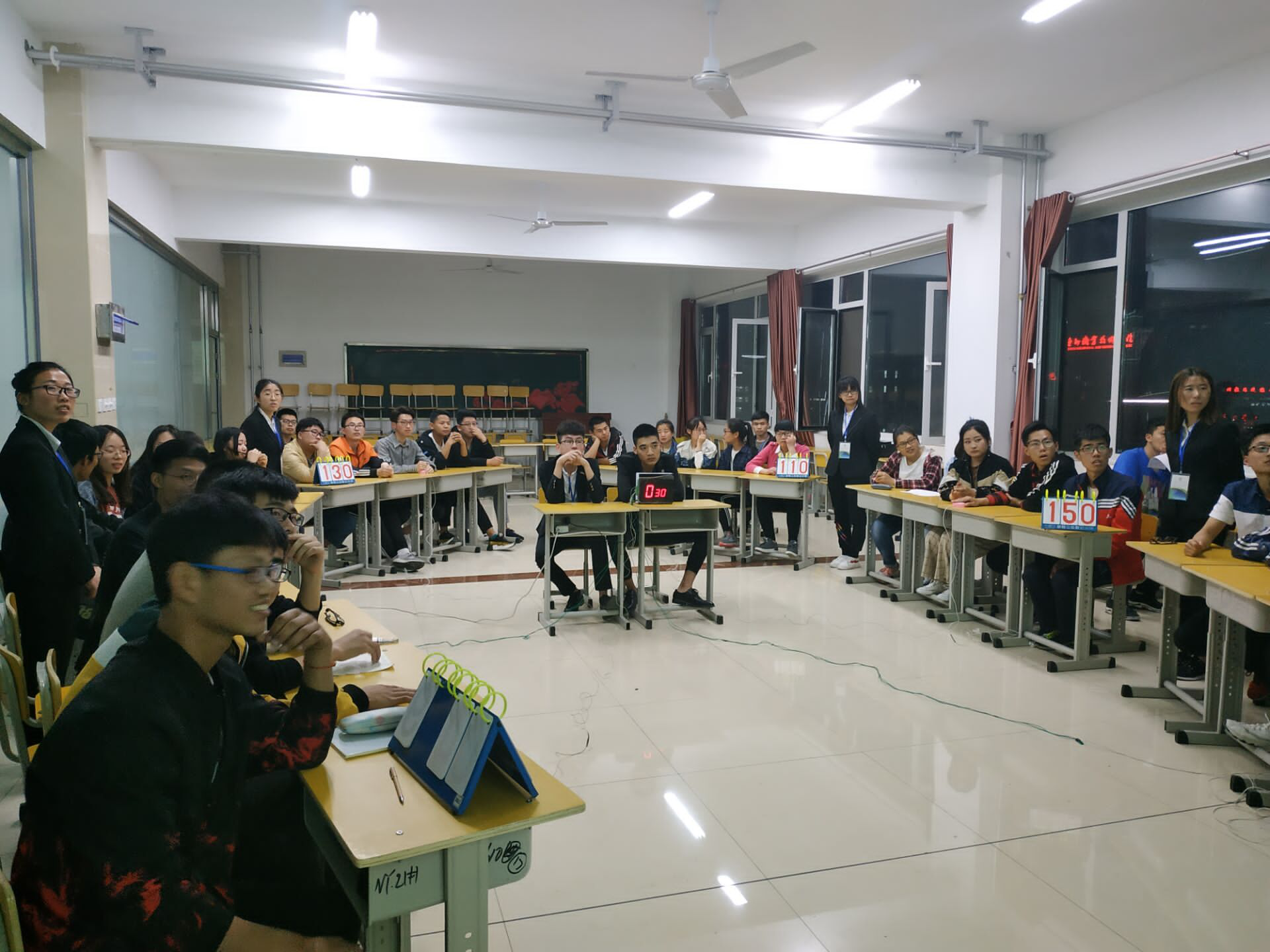 此次比赛共有六组团队参赛,竞赛分为必答题、抢答题,风险题、团队PK赛以及附加赛五个环节。题目涉及的范围广泛,与日常学习生活紧密结合,难易程度适中。在本次比赛过程中各支参赛队伍都表现出很高的水平,回答准确、迅速。在竞赛各环节,大家都表现出了极高的热度,在比赛过程中,通过各个参赛队员自信流畅的回答可以看出,大家都对本次竞赛给予了高度重视,在赛前进行了精心的准备。经过激烈的角逐,最后由吴远臣同学带领的第一代表队摘得此次比赛的桂冠,殷哲带领的第六代表队荣获第二名,赵东涧带领的第四代表队获得第三名。