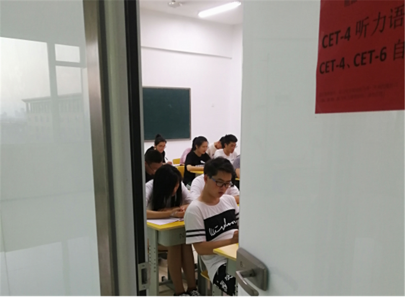 为提高我院学生英语听力能力,在四六级考试中取得好的分数,我院特批21号楼711教室作为英语四级语音室、四六级自习室。自习室于2018年5月7日正式开放使用。