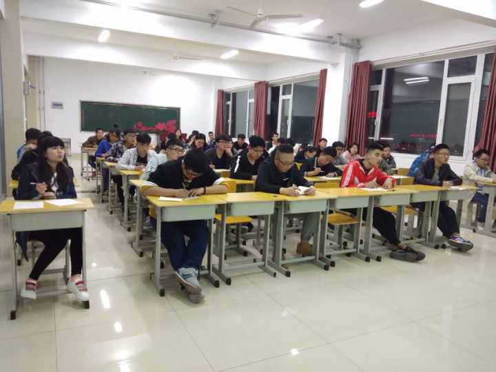 本次比赛风格独特、内容新颖,吸引了许多同学的关注。选手们提前抵达考试现场,比赛开始,由学生会学习部成员介绍考试规则:(1)选手分开就坐;(2)每人准备好纸笔;(3)比赛题目由PPT自动放映,每道题规定时间,过时即自动换题;(4)答题实行记分制。