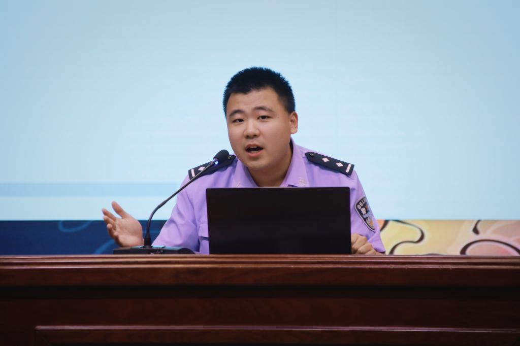 9月16日晚,第二场讲座《法制进校园,安全伴我行》在国际文化交流中心举行。民警邱超从大学生法制教育的迫切性、违法犯罪的后果、学习我国法律法规、学会保护自己四个方面,将法律知识与大学生的生活学习密切结合,将真实案例与法规解读相融合,为学生们上了一堂精彩的法制安全教育课。