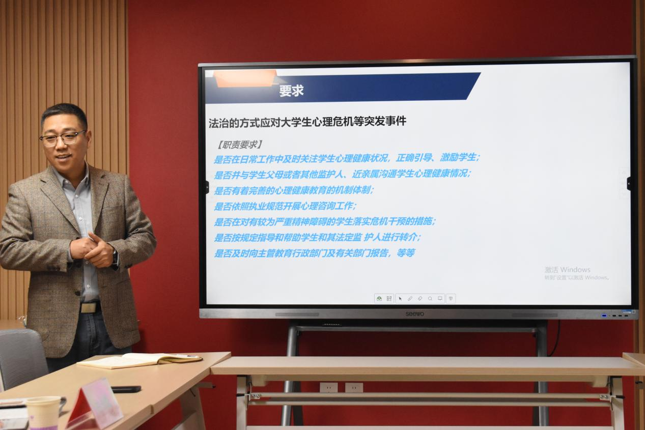 为进一步落实“以法育人”培养理念,普及法律常识,强化规律规则意识,11月21日上午,大学生明法守法辅导员领航工作室开展研讨学习交流会,会议邀请了马克思主义学院副院长孙宗魁、山东载熙律师事务所律师曲长城现场指导,yl9193永利集团副院长、工作室负责人刘占凯主持会议,学院团总支书记任秋燕、学管干事胡春卉、工作室成员李玲玉与孙婧睿等参加会议。
