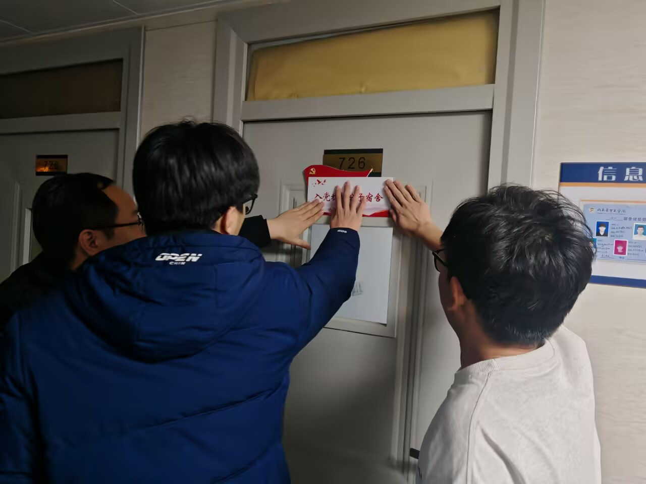 通过宿舍挂牌这一活动,公开学生党员和入党积极分子的身份,使他们成为同学们身边的榜样和力量源泉,在增强学生责任感和使命感,树立榜样力量的同时,激励更多学生积极向党组织靠拢。