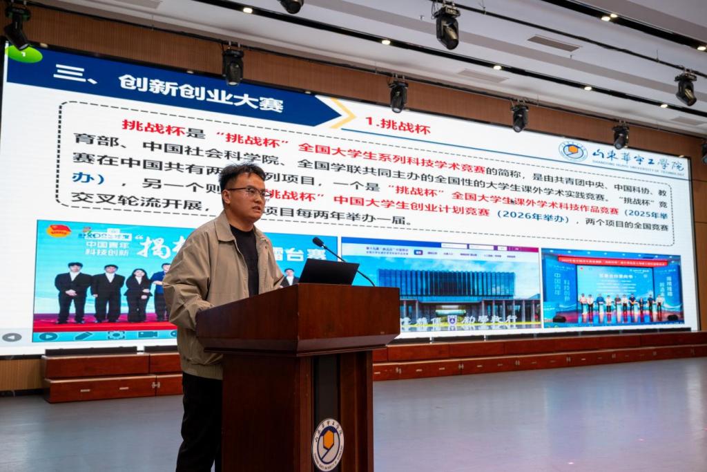 此次分享会邀请了获得2025年暑期社会实践“三百计划”校级优秀团队的负责人和“返家乡”社会实践优秀个人进行分享。他们依次上台,汇报各自团队的实践内容与成果、个人实践经历与收获,为参会学生提供可借鉴的实践经验。随后,马运涛老师向参会人员详细讲解学院重点支持的学科竞赛目录及参赛路径,并对学生代表性成果进行解析,为学生参与科技创新活动指明方向。