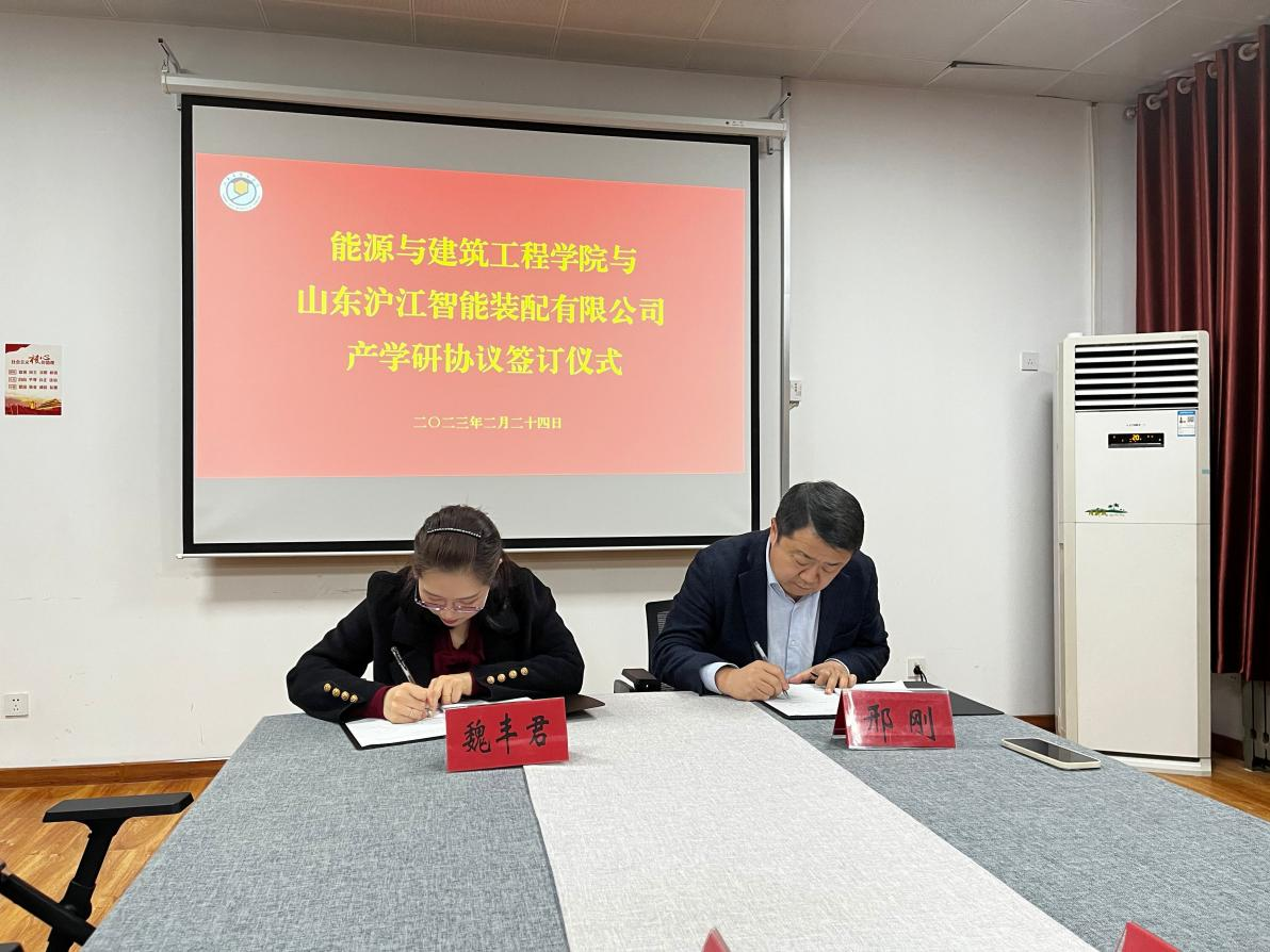 双方经过交流洽谈,确定了40名学生于3月份赴山东沪江智能装配有限公司进行毕业实习。最后,魏院长与邢总在与会人员的见证下签署了产学研合作协议,打开了双方共谋创新、融合发展的新篇章。
