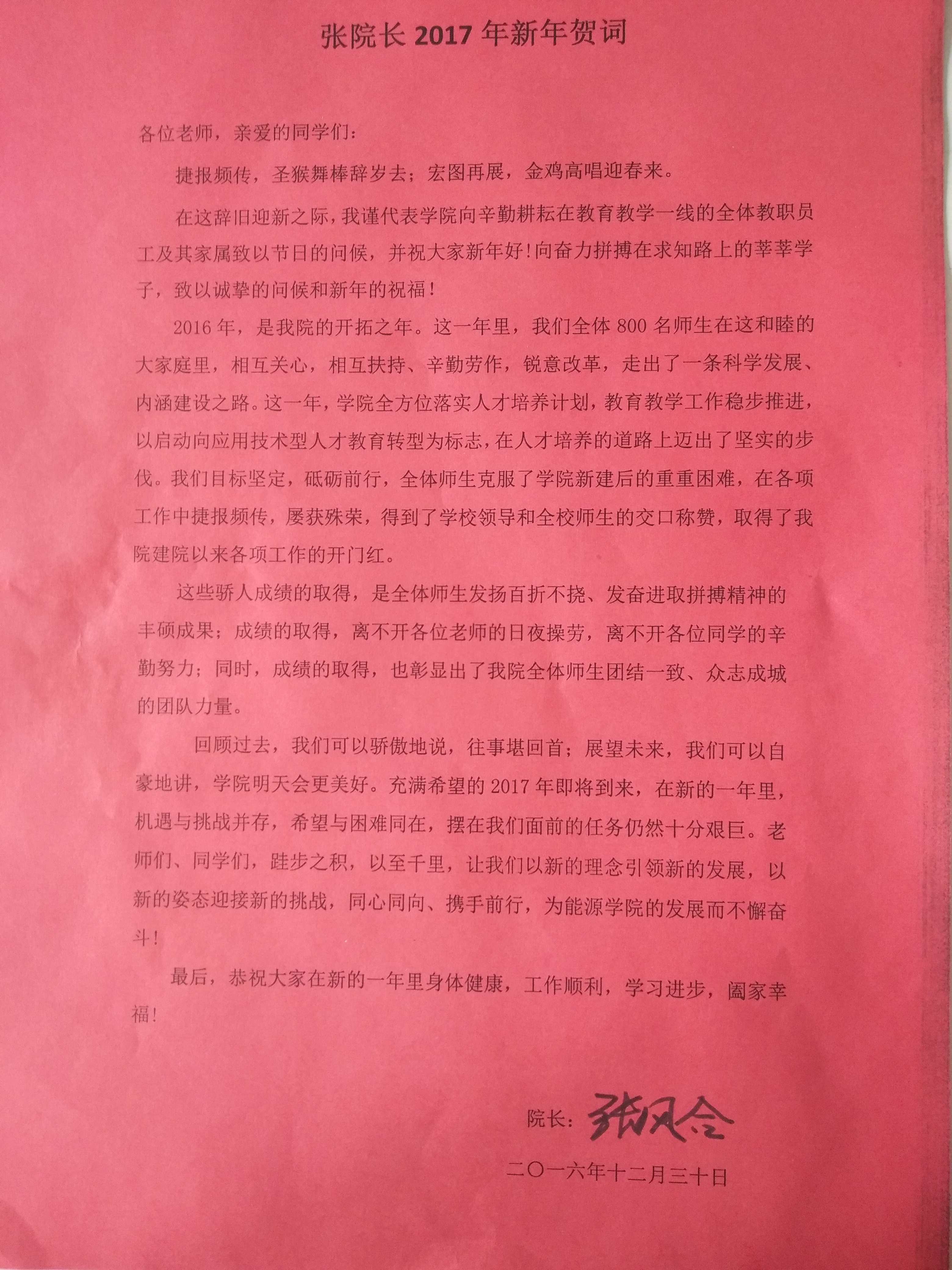 张院长2017年新年贺词