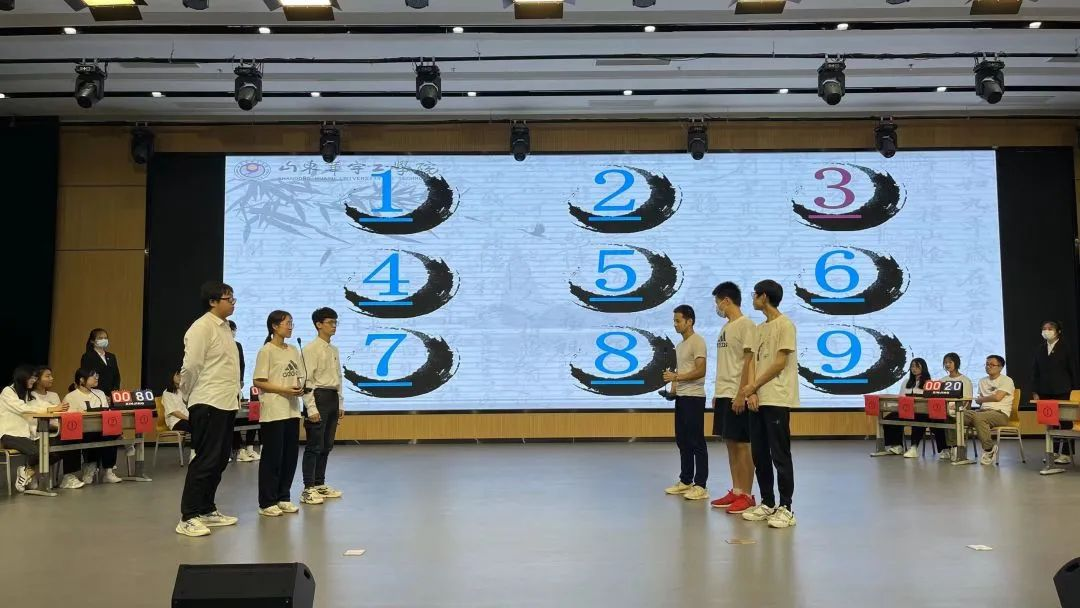 每队三人作答,由现场嘉宾选取屏幕上任意数字,每个数字后代表一套题,按照队伍顺序与题目中的字一一对应作答,要求每队任一位选手在规定时间内说出包含此字的诗句,以此类推,每队选手需说出含有该对应字的诗句,说不出的队伍淘汰,每队有且只有一次过题机会,直到最后一队胜出为止,思考时间为20秒。每队所答诗句为完整的一句或者半句,每答对一句加10分,少答、答错或超时不得分。