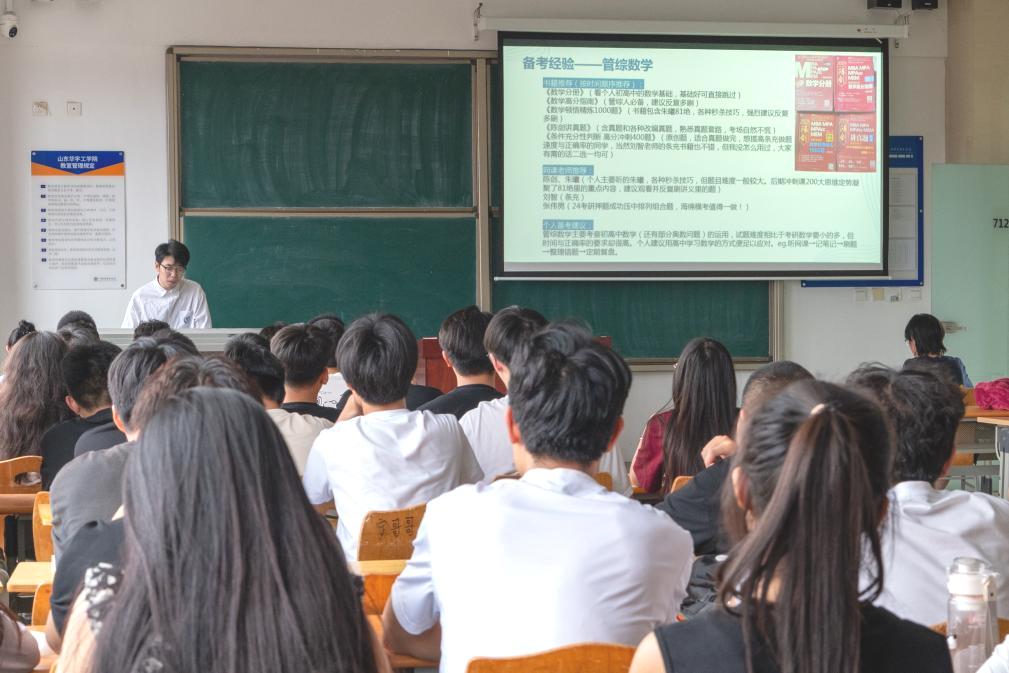本次活动邀请五位优秀学生代表分享经验,他们结合自身实践经历,就学习方法、资料准备、学习计划制定、考试注意事项和调剂技巧等方面进行了全面而详尽地分享。