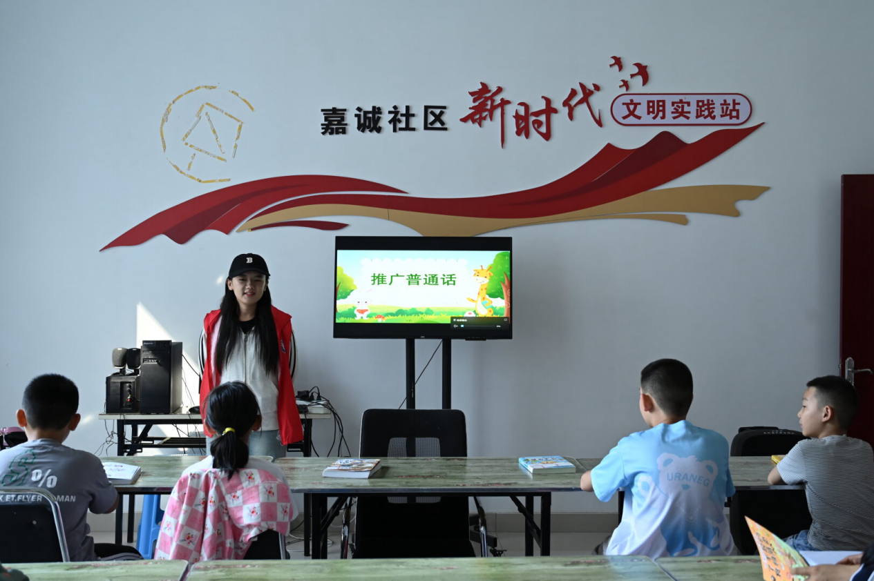 此次活动旨在提升社区孩子们对普通话的重视程度,增强他们的语言表达能力,引导孩子们自信大胆地阐述自身观点,在活动现场,志愿者们饱含热情地投入到活动中,在社区内掀起来一股学习和使用普通话的热潮。活动现场,志愿者们一字一句地纠正发音,从声母韵母的正确读法到优美的诗词朗诵,让孩子们沉浸在普通话的魅力之中。随后,孩子们全神贯注地观看了关于推广普通话的卡通视频,通过生动有趣的动画形式,深刻认识到普通话在沟通交流以及未来发展中的重要性。