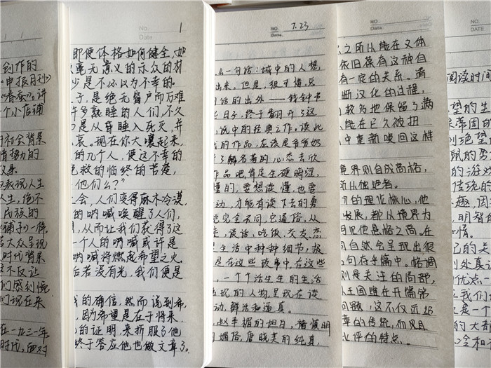 学院将展览地点分别设在22号教学楼6楼和7楼的教学区域,展品类别丰富多样,涵盖了“5+X”项目中的读书心得体会、最美瞬间剪影、帮助父母做有意义的事心得感想以及各具特长、各显神通的“X”项目,如书法、绘画、平面设计、学习笔记等。展台上的作品特色分明、精致美观,吸引了诸多师生驻足观摩,学院领导老师对同学们的作品也给予了较高评价,表示假期中通过开展“5+X”活动切实帮助学生开阔了眼界,锻炼了能力,夯实了知识基础。