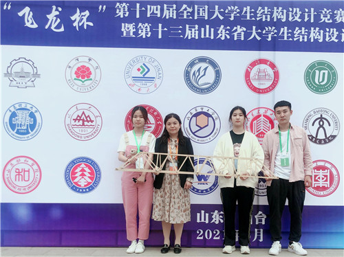 5月15日,“飞龙杯”第十四届全国大学生结构设计竞赛分赛区暨第十三届山东省大学生结构设计竞赛在烟台大学闭幕。本次竞赛由山东省大学生结构设计竞赛委员会主办、烟台大学承办,山东大学、中国海洋大学、中国石油大学(华东)等30所省内高校的33支队伍参赛,我校代表队(队员:刘皓冰、丁海青、李雲,指导教师:张春惠、徐希鹏)荣获三等奖。