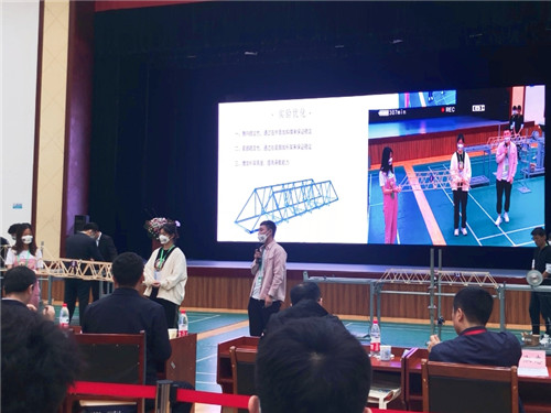 大赛前期,学院积极宣传,精心组织,协同各专业做好队伍选拔,最终确定道路桥梁与渡河工程专业刘皓冰、工程造价专业丁海青、李雲3名同学组成团队参加此次竞赛。备赛期间,学院领导高度重视,提供了全方位的备赛保障,专业老师给予了悉心指导。因疫情防控原因,为尽量减少人群聚集,本次竞赛采取“线上制作模型,线下加载比赛”的方式,模型制作环节各参赛队伍采用组委会提供材料自行制作。3位队员在模型制作、现场陈述与答辩、现场模型加载等环节稳扎稳打、齐心合力,首次参赛即获得三等奖(第14名)的好成绩。