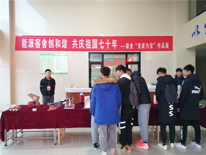 为积极贯彻学校宿舍文化节工作要求,丰富学生的宿舍文化生活,增强大学生环保意识,弘扬爱国精神,激发爱国情怀。能源与环境工程学院于11月中下旬举办了主题为“能源宿舍创和谐 共庆祖国七十年”的手工DIY活动,以利用宿舍物品及身边的材料来制作工艺品的方式,向祖国献礼。