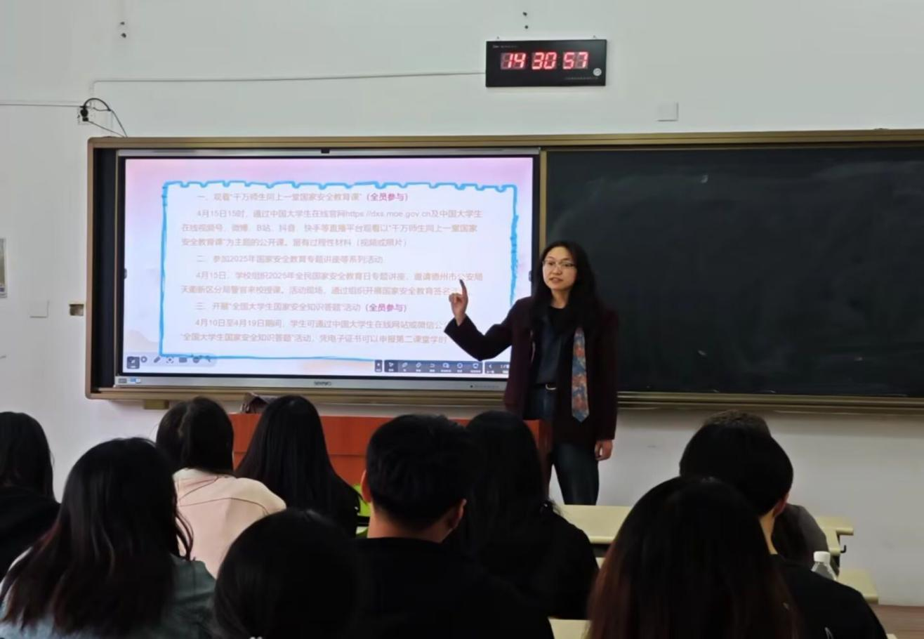 活动伊始,辅导员和团支书紧密围绕党的二十大以来的时代背景,讲述不同年龄、领域、行业的团员青年维护国家安全的事迹。从投身海外维和任务的青年军人在复杂国际环境中捍卫国家尊严与世界和平,到扎根乡村的基层工作者积极防范化解农业安全风险,保障国家粮食安全。这些鲜活案例,让团员青年深切感受到维护国家安全就在身边。在活动中,辅导员与团支书充分发挥组织与引导作用,通过图文并茂的展示,生动呈现全民国家安全教育的丰硕成果。同时,详细讲解公民举报奖励相关政策,鼓励团员青年积极参与到国家安全的维护中来。