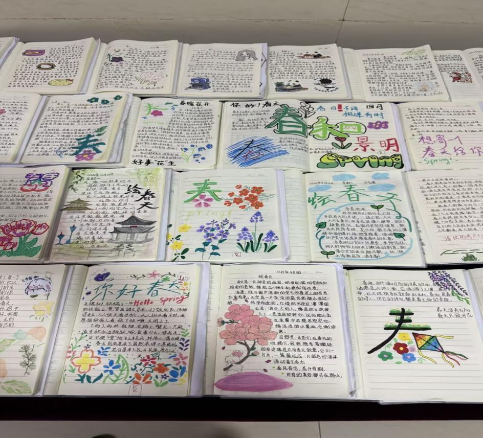 本次活动以文为笔、以春为墨,自活动开展以来,同学们纷纷化身 “春日记录者”,将对春天的感悟倾注于笔尖,一篇篇周记用细腻笔触勾勒出春日校园的万千气象,经过筛选,最终100篇兼具文学性与感染力的佳作脱颖而出,在展览中精彩亮相。在展览现场,各优秀周记作品错落有致地陈列,搭配手绘春日插画与绿植装饰,营造出清新雅致的氛围吸引大批师生驻足欣赏,前来参观的师生或轻声交流感受,或拍照记录精彩语句,现场不时传来声声赞叹。