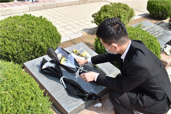 随后,同学们走到烈士墓碑旁,以无声代有声,敬献手中的鲜花,表达对烈士的最高敬意,深切缅怀革命先烈丰功伟绩,寄托哀思。