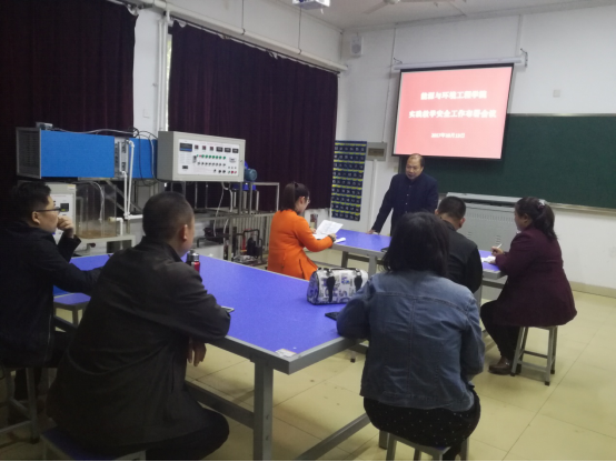 为贯彻落实《关于做好迎接中央党的十九大维稳安保工作集中督导检查准备工作的通知》等上级文件精神,进一步做好校园安全工作,为十九大的顺利召开创造安全稳定的环境,根据教务处《关于开展实践教学安全工作检查的通知》要求,2017年10月13日,我院召开了“能源与环境工程学院实践教学安全工作部署会议”,参会人员主要有学院院长张风合、副院长魏丰君、实验实训中心副主任张妍妍以及实践教学及实训管理相关人员。