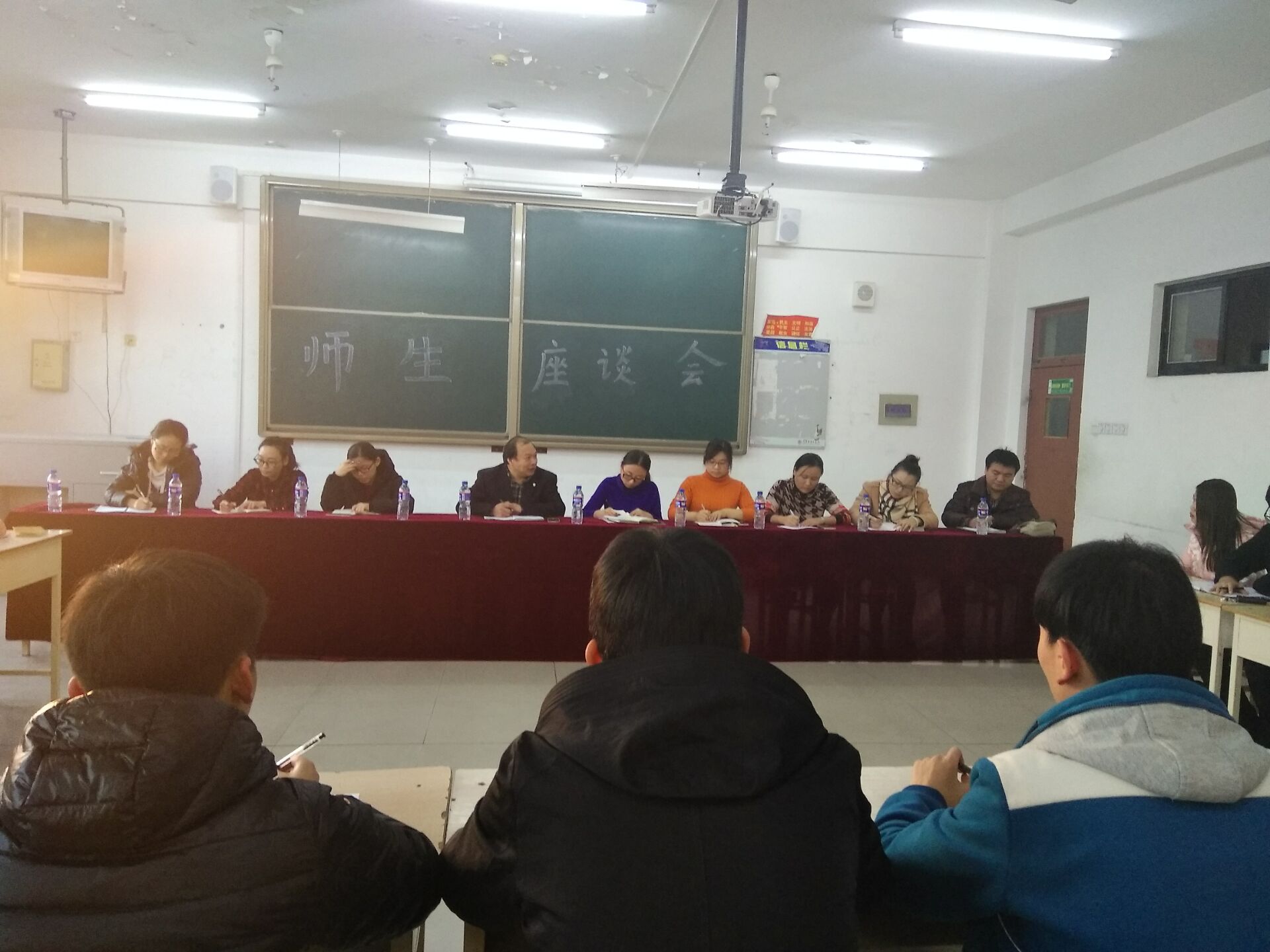 本次座谈会以学生提问,老师解答的方式,实现师生间的有效沟通,旨在解决学生学习和生活上的问题。交流期间,老师们本着有问必答的原则,向同学们阐明本次座谈会的意义并鼓励同学们积极发言。各班级代表畅所欲言,就考研问题、专业发展以及就业岗位所需技能等问题提出了自己的疑问。在座教师认真听取了每位学生代表的问题,并从政治素养、专业基础、实际操作、证件需求等各方面进行了详细地解答。现场师生充分交流,座谈气氛热烈。最后,张院长进行总结发言。他对同学们参与座谈积极建言献策表示感谢,后期要对学生们意见和建议作进一步的梳理研究,制定措施,改进教学工作,提高教学质量。并对在座学生提出两点希望,一是各位学生代表要积极发挥桥梁和纽带的作用,将座谈会的信息传达给班级其他同学;二是各位学生珍惜在校生活,积极努力,不仅要学好专业知识更应注重综合素质的全面提升。