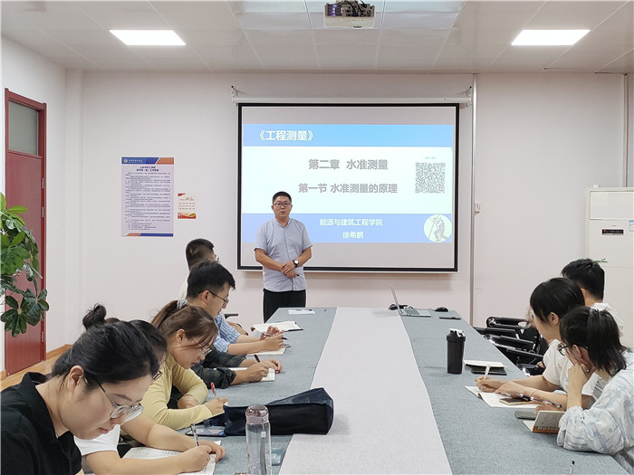 徐希鹏老师,校级一流课程《工程测量》负责人,获校级青年教师讲课比赛、课程思政讲课比赛一等奖;徐老师利用“珠峰身高”测量引入主题,融入课程思政元素,细分学习目标,从基础概念、测量原理、工程中实际应用案例等三方面进行授课。教学环节齐全、板书书写认真、教学方法多样,充分体现“一体、两线、三堂、四化”的教学模式。通过小组模拟“水准测量的过程”,充分体现以学生为中心的理念,通过测量数据处理过程,充分培养学生严谨细致的学习态度,通过开展课外拓展环节,帮助学生建立发现问题、分析问题、解决问题的意识,最后通过发散性、个性化练习题引导学生树立独立学习的意识。徐老师教学思路清晰、声音洪亮、整体教学效果较好。