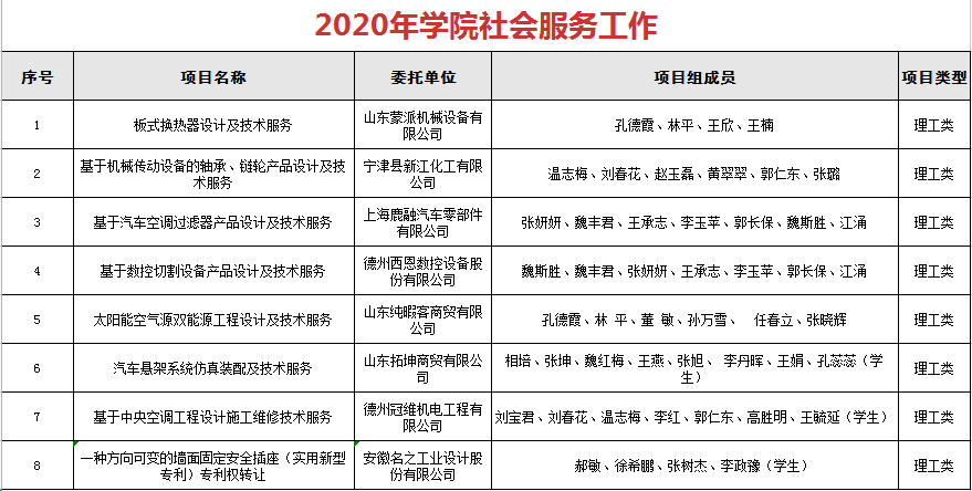 2020年学院社会服务工作